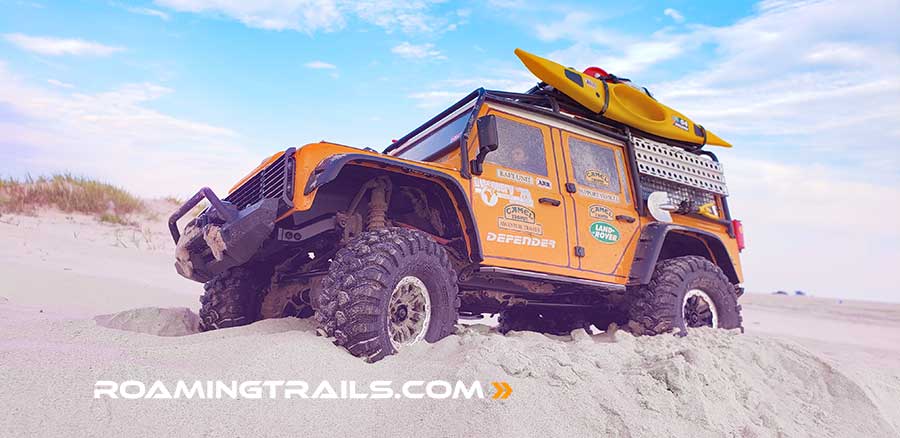 The Camel Trophy goes wheelin' at the beach! This customized remote controlled car out of the amazing Traxxas TRX-4® Scale and Trail™ Crawler can certainly take a beating. Nothing like lots of salt water and sand to really test out the capabilities of your rig.